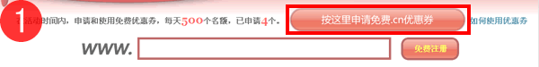 1、點(diǎn)擊“申請(qǐng)免費(fèi).cn優(yōu)惠券“得到優(yōu)惠券號(hào)碼。