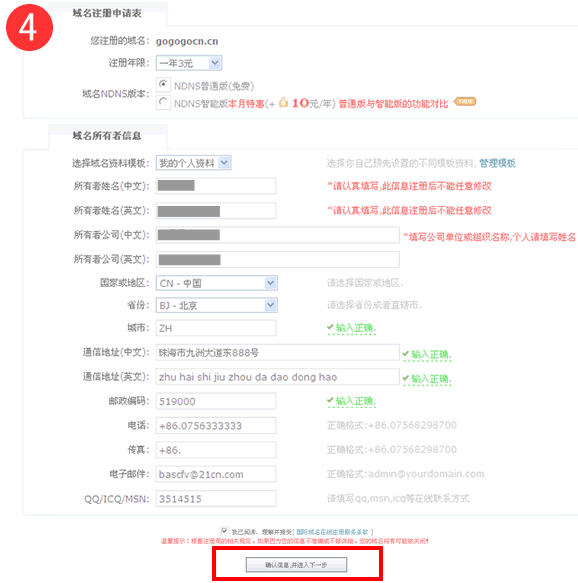 4、填寫資料后點(diǎn)擊“確認(rèn)信息,并進(jìn)入下一步
