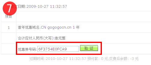7、輸入“優(yōu)惠券號(hào)碼”并點(diǎn)擊“驗(yàn)證