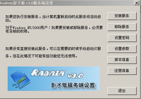 在Windows服務器中常用的遠程管理軟件有 1. windows 自帶的遠程終端管理軟件. 在您的服務器設置好遠程桌面后, 就可以用您自己的電腦連接服務器了. 2. Remote Admin(RA),Ra是一套非常強大的遠程管理軟件. 具有 很多功能(可以遠程控制. 遠程監(jiān)視桌面.文件上傳下載. 遠程關機,Telnet 命令行運行等.). 以下是簡單的安裝使用介紹. A. RA分兩部分. 服務器端(r_server)和 用戶端. 服務器端安裝后 先進行配置 主配置界面: