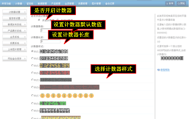 設置是否開啟計數(shù)器計數(shù)器數(shù)值、計數(shù)器長度、選擇計數(shù)器樣式,最后點擊右下角“應用更新”完成添加 。