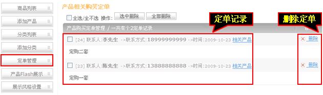 5、定單管理可以對定單進(jìn)行查詢、刪除