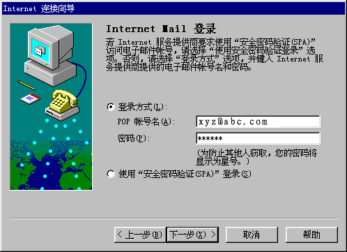 在登錄方式的pop帳號(hào)名和密碼中填寫(xiě)集團(tuán)電子郵件開(kāi)戶流程單中您的用戶名 和相應(yīng)的密碼。