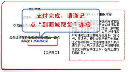 6、支付完成,請點“到商城取貨”連接,請謹記進行此操作,否則可能掉單!