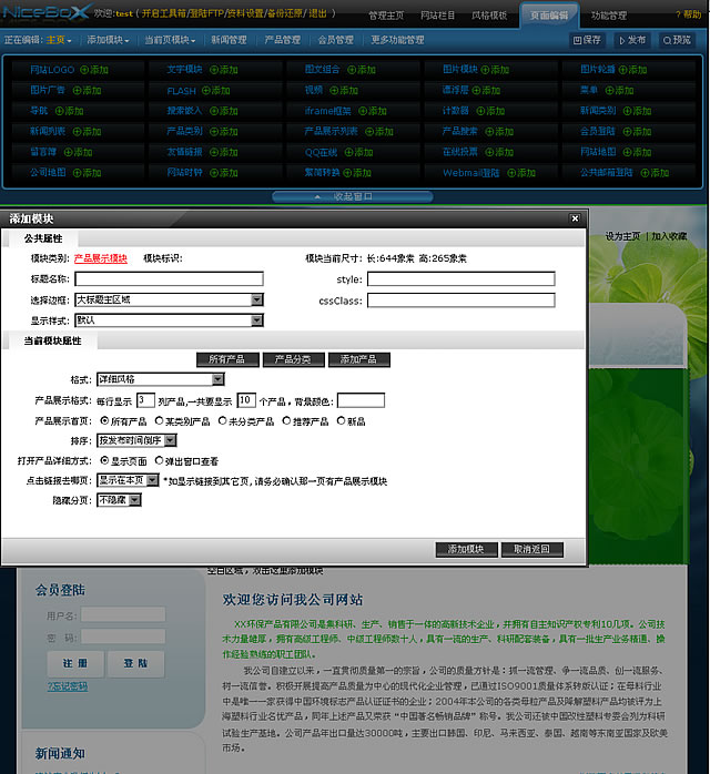 可以方便地在網(wǎng)頁中插入插件、拖放定位和改變插件尺寸,靈活設(shè)置插件邊框風格和插件顯示參數(shù),靈活設(shè)置網(wǎng)頁背景,網(wǎng)頁排版完全可視化,所見即所得,讓網(wǎng)站制作如同搭積木般便捷易玩;