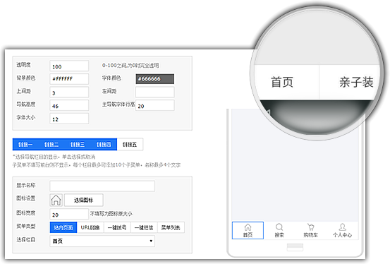 手機(jī)網(wǎng)站自定義底部導(dǎo)航鏈接,方便快捷