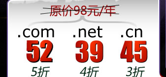 1、世界流行頂級COM域名82元,頂級Net域名118元,頂級Cn域名45元。姓名域名58元