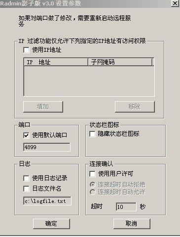 在Windows服務器中常用的遠程管理軟件有 1. windows 自帶的遠程終端管理軟件. 在您的服務器設置好遠程桌面后, 就可以用您自己的電腦連接服務器了. 2. Remote Admin(RA),Ra是一套非常強大的遠程管理軟件. 具有 很多功能(可以遠程控制. 遠程監(jiān)視桌面.文件上傳下載. 遠程關機,Telnet 命令行運行等.). 以下是簡單的安裝使用介紹. A. RA分兩部分. 服務器端(r_server)和 用戶端. 服務器端安裝后 先進行配置 主配置界面: