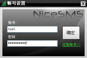 第二步,在這里填上短信平臺的賬號,確定后進(jìn)入主界面